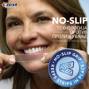 ANTI-SLIP“ ТЕХНОЛОГИЈА што значи дека лентите остануваат залепени додека не ги извадите, овозможувајќи ви да зборувате, па дури и да пиете вода додека ги избелувате забите. Ексклузивната технологија FlexFit им овозможува на лентите да се протегаат преку забите, покривајќи 30% повеќе од вашата насмевка наспроти лентите што не се виткаат.